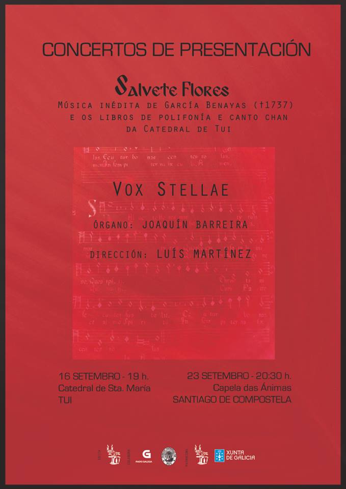 Se ha presentado también la primera grabación de la música contenida en el libro, a cargo del coro de cámara Vox Stellae, dirigido por Luís Martínez, que contará con la participación del organista Joaquín Barreira.